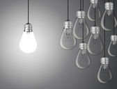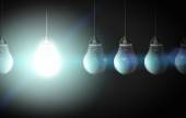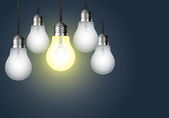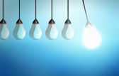 Koncepcja pomysł i lidera. Grupa żarówek na niebieski bac