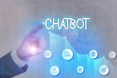 Chatbot i hologram sztucznej inteligencji z ikonami i wiadomościami mediów społecznościowych, czatem cyfrowym i asystentem online. Koncepcja uczenia maszynowego i nowoczesnej technologii. Ilustracja 3D renderowania
