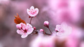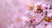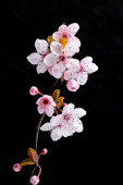 defokus przetargu różowy sakura kwiaty na czarnym tle