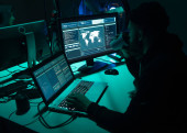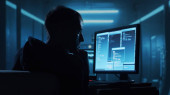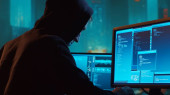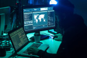 Zdjęcie "Haker komputerowy w kapturze. Zakryta Ciemna Twarz. Atak hakera, oprogramowanie zainfekowane wirusem, ciemna sieć i koncepcja bezpieczeństwa cybernetycznego." może być wykorzystywane do celów osobistych i komercyjnych zgodnie z warunkami zakupionej licencji Royalty-free. Obraz jest dostępny do pobrania w jakości wysokiej rozdzielczości do 5760x3840.