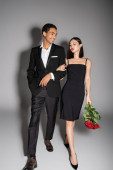 Zdjęcie "elegancki Afroamerykanin mężczyzna obejmujący zmysłowy Azji kobieta z czerwonymi ustami na szarym tle, sztandar" może być wykorzystywane do celów osobistych i komercyjnych zgodnie z warunkami zakupionej licencji Royalty-free. Obraz jest dostępny do pobrania w jakości wysokiej rozdzielczości do 5760x3840.