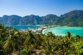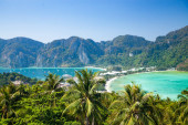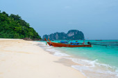 Zdjęcie "Widok z lotu ptaka na wyspy Ko Phi Phi, Tajlandia. Widok z punktu widzenia tropikalnej wyspy, plaży i oceanu z długimi łodziami ogonowymi. Egzotyczna przyroda, letnia pogoda." może być wykorzystywane do celów osobistych i komercyjnych zgodnie z warunkami zakupionej licencji Royalty-free. Obraz jest dostępny do pobrania w jakości wysokiej rozdzielczości do 5760x3840.