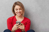 Zdjęcie "Wesoły kobieta z telefonu komórkowego" może być wykorzystywane do celów osobistych i komercyjnych zgodnie z warunkami zakupionej licencji Royalty-free. Obraz jest dostępny do pobrania w jakości wysokiej rozdzielczości do 5760x3840.