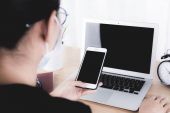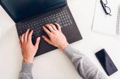 Zdjęcie "widok z góry wytatuowany kobieta gospodarstwa smartfon z pustym ekranem w pobliżu laptopa, notebook, i filiżanka kawy ze spodkiem na białym stole podczas pracy w domu, freelancer, nowoczesne miejsce pracy " może być wykorzystywane do celów osobistych i komercyjnych zgodnie z warunkami zakupionej licencji Royalty-free. Obraz jest dostępny do pobrania w jakości wysokiej rozdzielczości do 5760x3840.