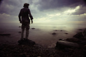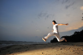 Zdjęcie "dynamiczny obraz człowieka pozowanie nad morzem" może być wykorzystywane do celów osobistych i komercyjnych zgodnie z warunkami zakupionej licencji Royalty-free. Obraz jest dostępny do pobrania w jakości wysokiej rozdzielczości do 5760x3840.