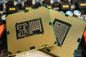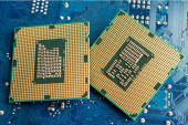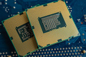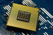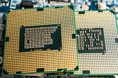 CPU, jednostka centralna procesora Chip na płytce drukowanej w technologii komputerów PC i laptopów.