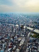 Zdjęcie "Tokio jest pokryte smogiem. Widok z tarasu widokowego wieży. Najdłuższą rzeką w Tokio jest Sumida-gawa.. " może być wykorzystywane do celów osobistych i komercyjnych zgodnie z warunkami zakupionej licencji Royalty-free. Obraz jest dostępny do pobrania w jakości wysokiej rozdzielczości do 5760x3840.