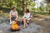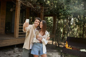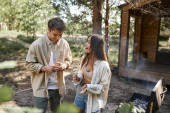 Pozytywna para z czasem spędzonym przy grillu i domku letniskowym na świeżym powietrzu