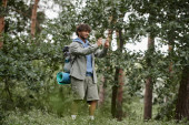 Zdjęcie "wesoły młody hinduski turysta gospodarstwa kije trekkingowe i butelka sportowa w pobliżu plecaka w lesie" może być wykorzystywane do celów osobistych i komercyjnych zgodnie z warunkami zakupionej licencji Royalty-free. Obraz jest dostępny do pobrania w jakości wysokiej rozdzielczości do 5760x3840.