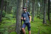 Zdjęcie "indiański Backpacker uśmiechając się i trzymając kije trekkingowe na naturalnej ścieżce w lesie, koncepcja przygody" może być wykorzystywane do celów osobistych i komercyjnych zgodnie z warunkami zakupionej licencji Royalty-free. Obraz jest dostępny do pobrania w jakości wysokiej rozdzielczości do 5760x3840.