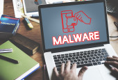 haker używa złośliwego oprogramowania z laptopem włamać hasło dane osobowe i pieniądze z kont bankowych.Scam Virus Spyware Antivirus digital technology internet online Concept.