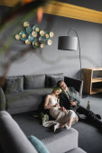 Zdjęcie "wieloetniczna para patrząca na siebie i siedząca na łóżku w wiejskim domu z widokiem na las" może być wykorzystywane do celów osobistych i komercyjnych zgodnie z warunkami zakupionej licencji Royalty-free. Obraz jest dostępny do pobrania w jakości wysokiej rozdzielczości do 5760x3840.