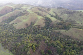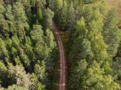 Samotna droga prowadzi przez niekończący się las na północnym zachodzie Pacyfiku..
