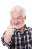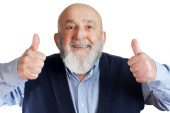 Starszy człowiek z białą brodą mówiąc Ok z jego strony