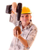 Zdjęcie "człowiek z wiertarką" może być wykorzystywane do celów osobistych i komercyjnych zgodnie z warunkami zakupionej licencji Royalty-free. Obraz jest dostępny do pobrania w jakości wysokiej rozdzielczości do 5760x3840.