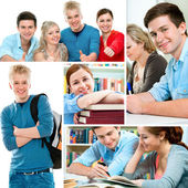 szczęśliwy uśmiechający się uczniowie stojąc razem