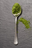 dwie łyżki algi spirulina i proszek Kiełki pszenicy