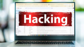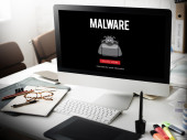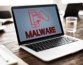 Laptop komputer wyświetlający znak ostrzegawczy złośliwego oprogramowania na stronie internetowej poczty e-mail