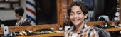 Przystojny Azjata nakłada przepaski na oczy dla swojej pielęgnacji skóry w szarym studio.