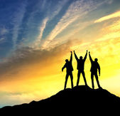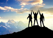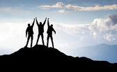 Zdjęcie "Sylwetki zespół na szczyt góry." może być wykorzystywane do celów osobistych i komercyjnych zgodnie z warunkami zakupionej licencji Royalty-free. Obraz jest dostępny do pobrania w jakości wysokiej rozdzielczości do 5760x3840.