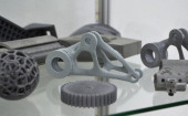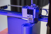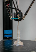 Abstrakcyjny obiekt artystyczny wydrukowany na drukarce 3D. Kolorowy, beżowy, kreatywny model rakiety wydrukowanej na drukarce 3D z roztopionego włókna ABS, PLA z tworzywa sztucznego. Obiekt drukowany drukarka FDM. Dodatek nowa nowoczesna technologia