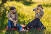 Zdjęcie "Mężczyzna i kobieta relaksują się na łodzi, gdy delikatnie ślizga się po wodzie, otoczeni spokojem natury.." może być wykorzystywane do celów osobistych i komercyjnych zgodnie z warunkami zakupionej licencji Royalty-free. Obraz jest dostępny do pobrania w jakości wysokiej rozdzielczości do 5760x3840.