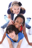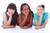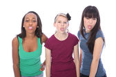 podekscytowany niespodzianka dla etnicznych nastoletnia dziewczyna przyjaciółmi