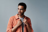 Przystojny mężczyzna w białej koszuli i okularach przeciwsłonecznych