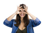 Zdjęcie "kobieta patrząc przez wyimaginowane lornetka" może być wykorzystywane do celów osobistych i komercyjnych zgodnie z warunkami zakupionej licencji Royalty-free. Obraz jest dostępny do pobrania w jakości wysokiej rozdzielczości do 5760x3840.