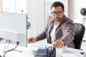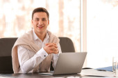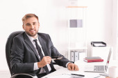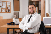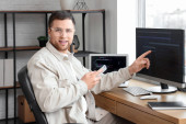 Zdjęcie "Młody biznesmen siedzi przy stole w biurze" może być wykorzystywane do celów osobistych i komercyjnych zgodnie z warunkami zakupionej licencji Royalty-free. Obraz jest dostępny do pobrania w jakości wysokiej rozdzielczości do 5760x3840.