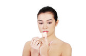 Zdjęcie "piękna młoda kobieta zastosowanie róż do policzków" może być wykorzystywane do celów osobistych i komercyjnych zgodnie z warunkami zakupionej licencji Royalty-free. Obraz jest dostępny do pobrania w jakości wysokiej rozdzielczości do 5760x3840.