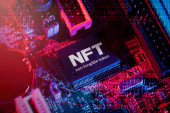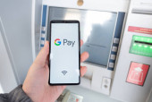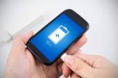 ręka trzyma smartphone z technologii nfc - w pobliżu pole elektronicz