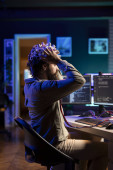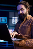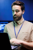 Zdjęcie "Inżynier zajmujący się awariami systemu centrów danych, zamawiający serwery o wysokiej dostępności w celu zminimalizowania przestojów. Ekspert instalujący zasilacze nadmiarowe w celu zapobiegania awariom" może być wykorzystywane do celów osobistych i komercyjnych zgodnie z warunkami zakupionej licencji Royalty-free. Obraz jest dostępny do pobrania w jakości wysokiej rozdzielczości do 5760x3840.