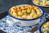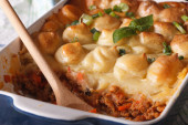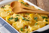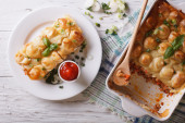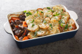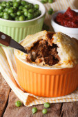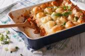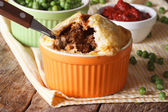 Pie Shepherds w wypiek zbliżenie danie. Poziomy widok z góry