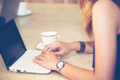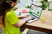 Zdjęcie "freelancer kobieta siedzi przodu laptopa" może być wykorzystywane do celów osobistych i komercyjnych zgodnie z warunkami zakupionej licencji Royalty-free. Obraz jest dostępny do pobrania w jakości wysokiej rozdzielczości do 5760x3840.