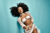 Piękna młoda kobieta prezentuje swój modny strój podczas relaksu na gładkich kamyczków.