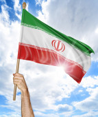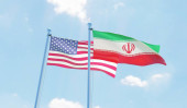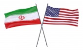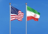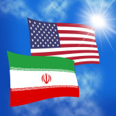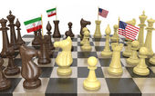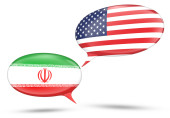 Flagi amerykańskiej i irański latania razem rozmowy dyplomatyczne