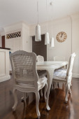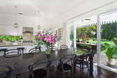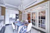 Zdjęcie "Nowoczesnej jadalni z kuchni" może być wykorzystywane do celów osobistych i komercyjnych zgodnie z warunkami zakupionej licencji Royalty-free. Obraz jest dostępny do pobrania w jakości wysokiej rozdzielczości do 5760x3840.