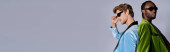 Cztery różne osoby wyrażają radość i jedność, jednocześnie świętując swoją tożsamość..