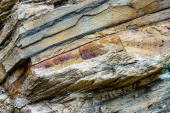 Zdjęcie "Siła natury skompresowane pęknięte warstwy skalne struktury tworzące zbliżenie szczegóły, w różnych kształtach, kolorach, grubościach, na południowym środkowym wybrzeżu Krety, Grecja. Natura, koncepcja nauki geologicznej" może być wykorzystywane do celów osobistych i komercyjnych zgodnie z warunkami zakupionej licencji Royalty-free. Obraz jest dostępny do pobrania w jakości wysokiej rozdzielczości do 5760x3840.