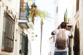 Zdjęcie "Szczęśliwy facet spacery i przy użyciu telefonu komórkowego" może być wykorzystywane do celów osobistych i komercyjnych zgodnie z warunkami zakupionej licencji Royalty-free. Obraz jest dostępny do pobrania w jakości wysokiej rozdzielczości do 5760x3840.