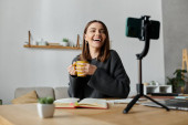Zdjęcie "Atrakcyjny młody freelancer demonstruje techniki makijażu podczas angażowania się z publicznością online." może być wykorzystywane do celów osobistych i komercyjnych zgodnie z warunkami zakupionej licencji Royalty-free. Obraz jest dostępny do pobrania w jakości wysokiej rozdzielczości do 5760x3840.