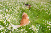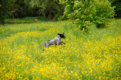 Zdjęcie "Szczęśliwe psy biegną na łące z jaskry" może być wykorzystywane do celów osobistych i komercyjnych zgodnie z warunkami zakupionej licencji Royalty-free. Obraz jest dostępny do pobrania w jakości wysokiej rozdzielczości do 5760x3840.