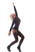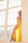 Piękne włosy, portret młodej dziewczyny z krótka sukienka