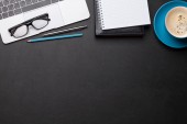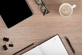 Biurko z komputerem, dostaw i kawy