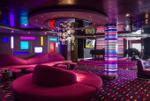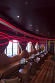 kawiarnia z jasnym wielobarwny wnetrze i duży ekran na ścianie ge