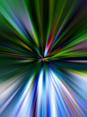 4K abstract digital art featuring a radial blur effect with a central point of focus, radiating outwards. Dynamic picture with motion and speed effect.