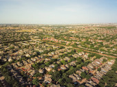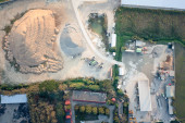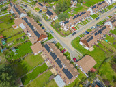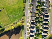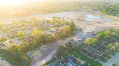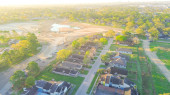 Zdjęcie "Domy mieszkalne i kamienice w pobliżu placu budowy z ciężkim sprzętem, wywrotki, dźwigi przemieszczające odpady zgniatające, brud w projekcie miejskim basenów przetrzymywania wód opadowych, North Houston, antena. Stany Zjednoczone" może być wykorzystywane do celów osobistych i komercyjnych zgodnie z warunkami zakupionej licencji Royalty-free. Obraz jest dostępny do pobrania w jakości wysokiej rozdzielczości do 5760x3840.