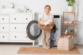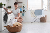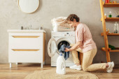 Zdjęcie "Radosna starsza kobieta w miękkiej piżamie składa pranie w eleganckiej, roślinnej przestrzeni życiowej." może być wykorzystywane do celów osobistych i komercyjnych zgodnie z warunkami zakupionej licencji Royalty-free. Obraz jest dostępny do pobrania w jakości wysokiej rozdzielczości do 5760x3840.