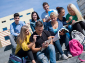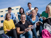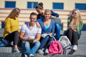 Zdjęcie "Studenci poza siedzący na schodach" może być wykorzystywane do celów osobistych i komercyjnych zgodnie z warunkami zakupionej licencji Royalty-free. Obraz jest dostępny do pobrania w jakości wysokiej rozdzielczości do 5760x3840.